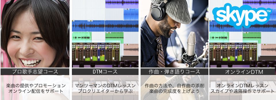 楽譜が読めなくても、楽器が弾けなくても、 マウス操作だけで音楽が作れれます! パソコンの使い方がわからなくても大丈夫! 基本の”き”からマニアックな知識まで、 講師が親切丁寧にレクチャーします。 「オリジナル曲を作りたい」「ボカロPになりたい」 「カラオケや歌ってみた用の音源を作りたい」 「家でレコーディングをしてみたい」などなど・・・ はじめて音楽を習う人はもちろん、今までに 音楽の経験がある人も、DTMを経験すると 音楽の幅がグッと広がりますよ! オンラインレッスンにも対応しておりますのでご相談ください。