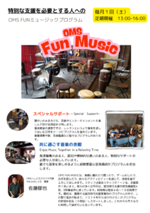 - 音楽グループレッスン生募集!(特別な支援を必要とする方向け)障がいのある方でも、一緒に音楽を楽しめます!第2の居場所作りとしても!音楽を通して、余暇を楽しみ、友達などとの交流もあり生き生きとした安心して楽しめる空間を提供しています!月に1回定期開催しております。無料見学会実施中で […]